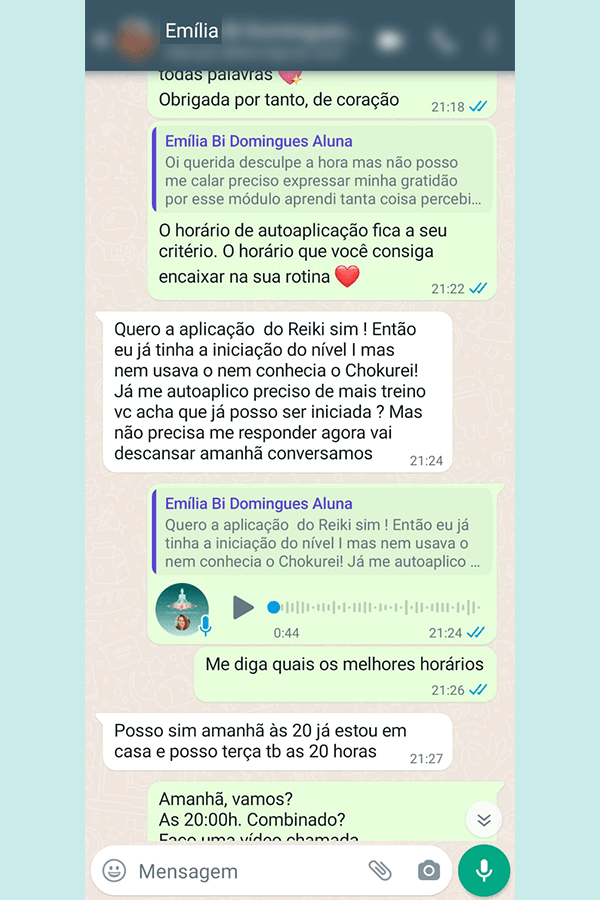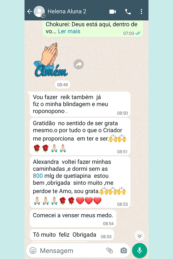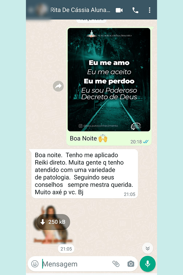 Aluna nos cursos de Chakras e Reiki.